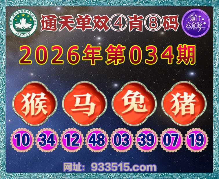 034期:『通天单双』 🏆④肖⑧码🏆【猴马兔】开:猪19