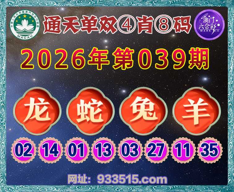 039期:『通天单双』 🏆④肖⑧码🏆【龙蛇兔】开:羊11