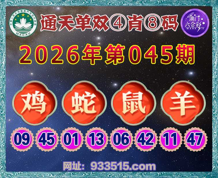 045期:『通天单双』 🏆④肖⑧码🏆【鸡鼠羊】开:蛇01