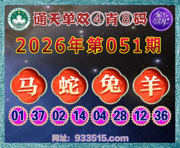 051期:『通天单双』 🏆④肖⑧码🏆【蛇兔羊】开:马01