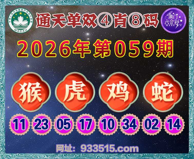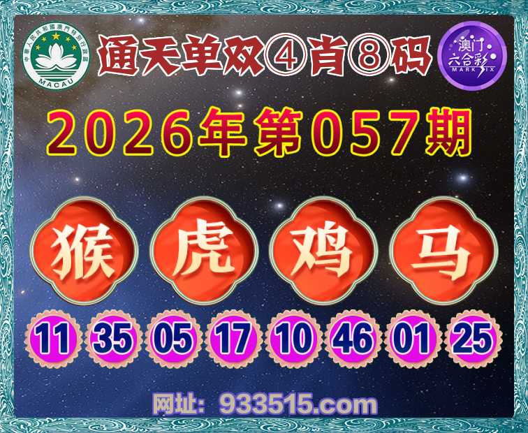 057期:『通天单双』 🏆④肖⑧码🏆【虎鸡马】开:猴23