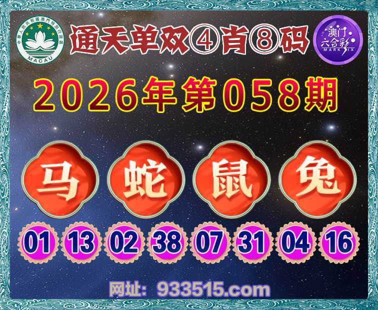 058期:『通天单双』 🏆④肖⑧码🏆【马蛇兔】开:鼠31